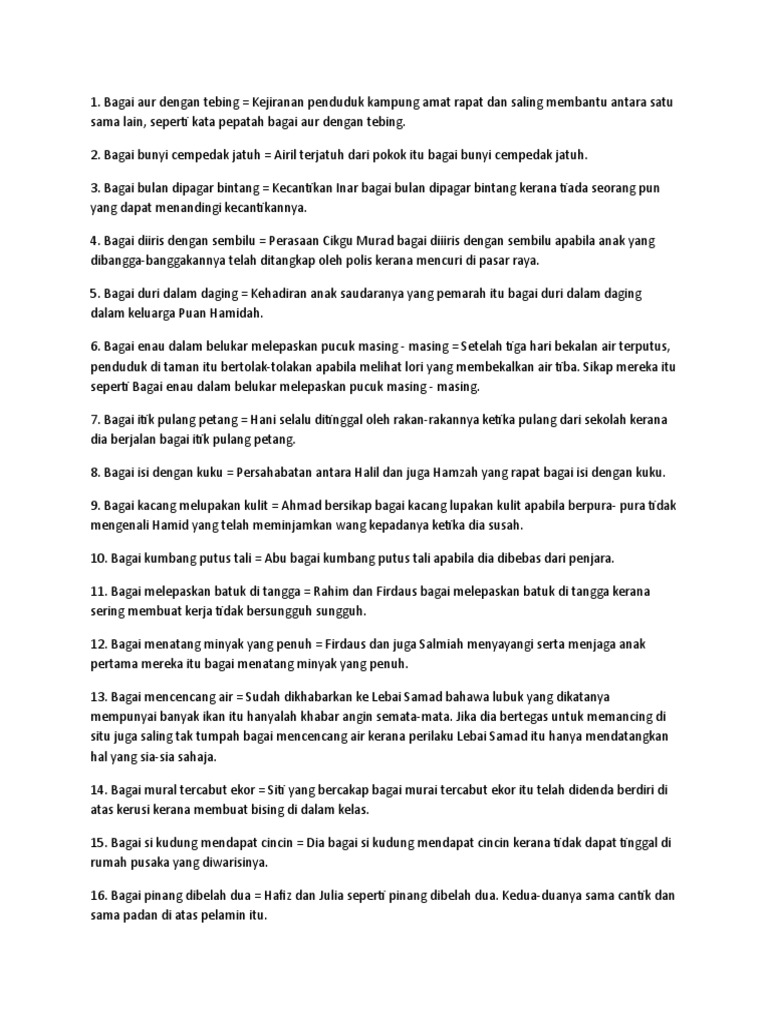 Peribahasa Simpulan Bahasa Perumpamaan Idioms Proverbs Phrasal Verbs Dialect Slanga Adage Sayings Simile Colloquial. Seseorang yang kembarsama sifat dan karakternya.